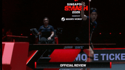 在首轮对决澳大利亚选手卢伟的第二局比赛中,王楚钦被判罚台内抛球,随后他发起挑战,并成功。