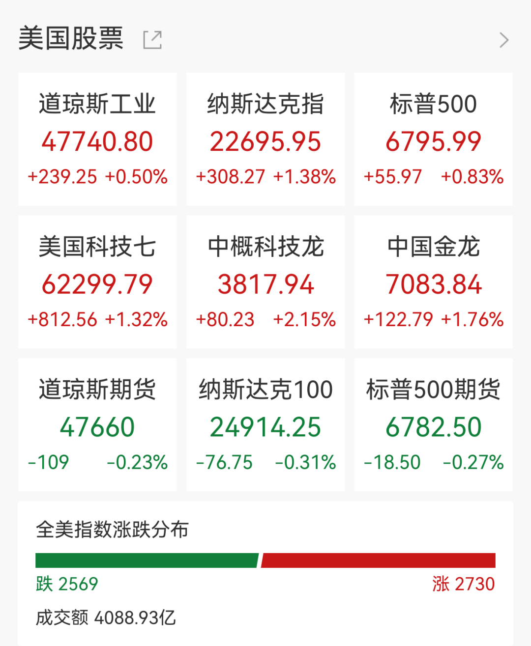 周一(3月9日),美国三大股指全线收涨。道指涨0.5%;标普500指数涨0.83%,盘中一度跌超1.5%;纳指涨1.38%,基本收复自伊朗冲突以来的全部跌幅。据央视新闻报道,特朗普称美国对伊朗战事已基本结束。