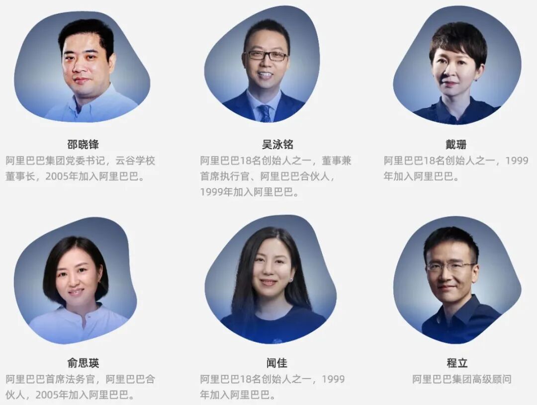 阿里巴巴集团主席蔡崇信、CEO吴泳铭、风险委员会主席邵晓锋、电商事业群CEO蒋凡,以及蚂蚁集团董事长井贤栋与CEO韩歆毅。